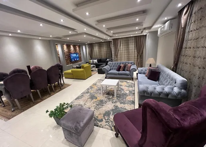 The spacious Cozy And Modern Apartment For Rent In Mohandessin Cairo includes a terrace and is situated a 6-minute walk from Anas Ibn Malek Mosque.